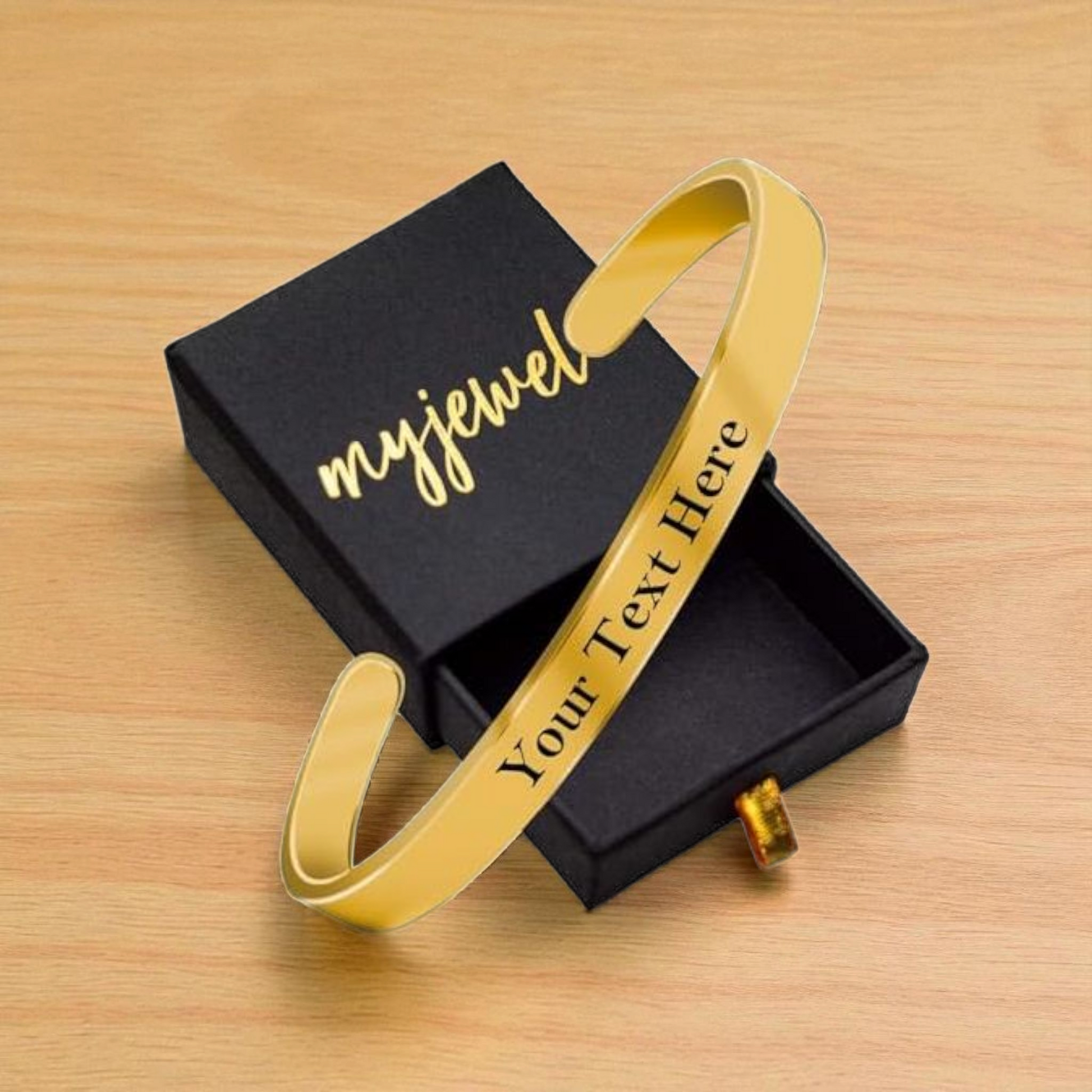 Personalized Golden Bracelet – Stylish Engraved Kada for Unisex