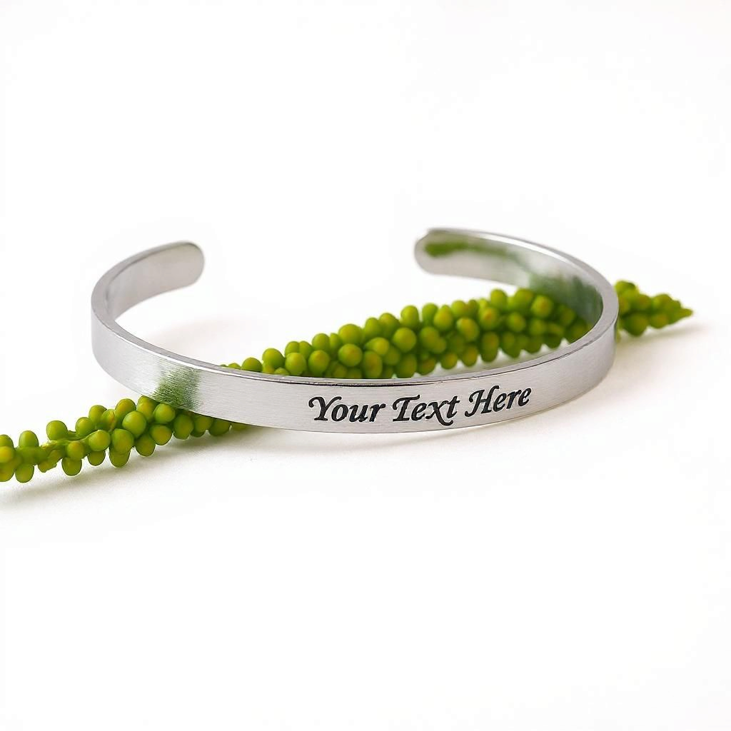 A perfect fusion of tradition, elegance, and modern flair, this Name-Engraved Silver Kada is crafted to make a lasting impression. Designed for both men and women, its sleek silver-tone finish brings a timeless yet contemporary touch to any outfit—whether you're dressing up for a special occasion or elevating your everyday look. Personalize it with a name, date, or meaningful message, and turn this kada into a symbol of your unique identity.