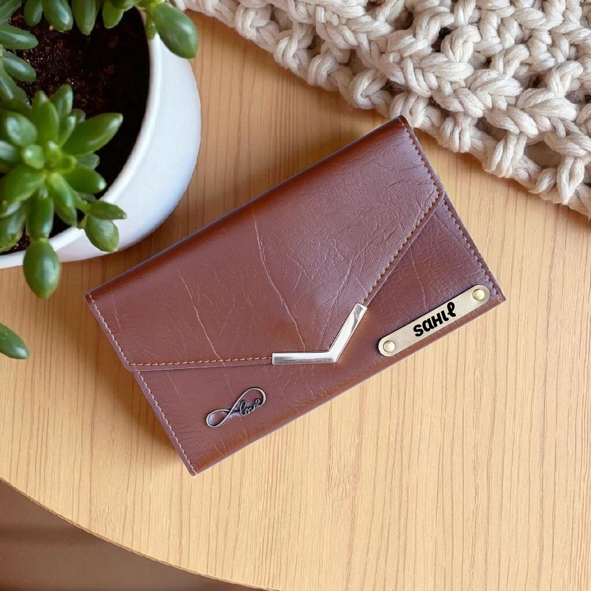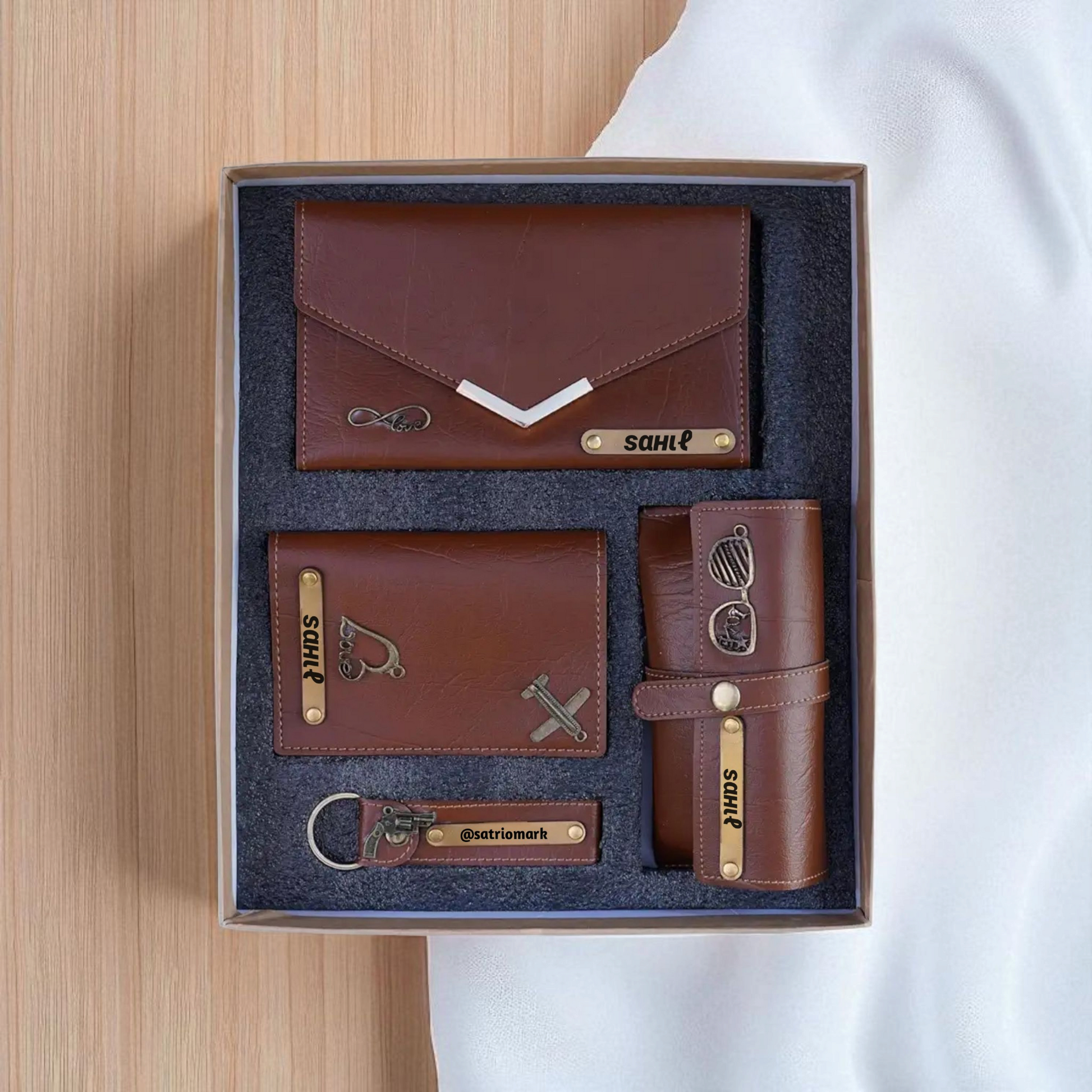 Premium Customized Leather Gift Set for Women – Clutch, Passport Cover, Keychain & Eyewear Case with Custom Name & Charms(Brown)