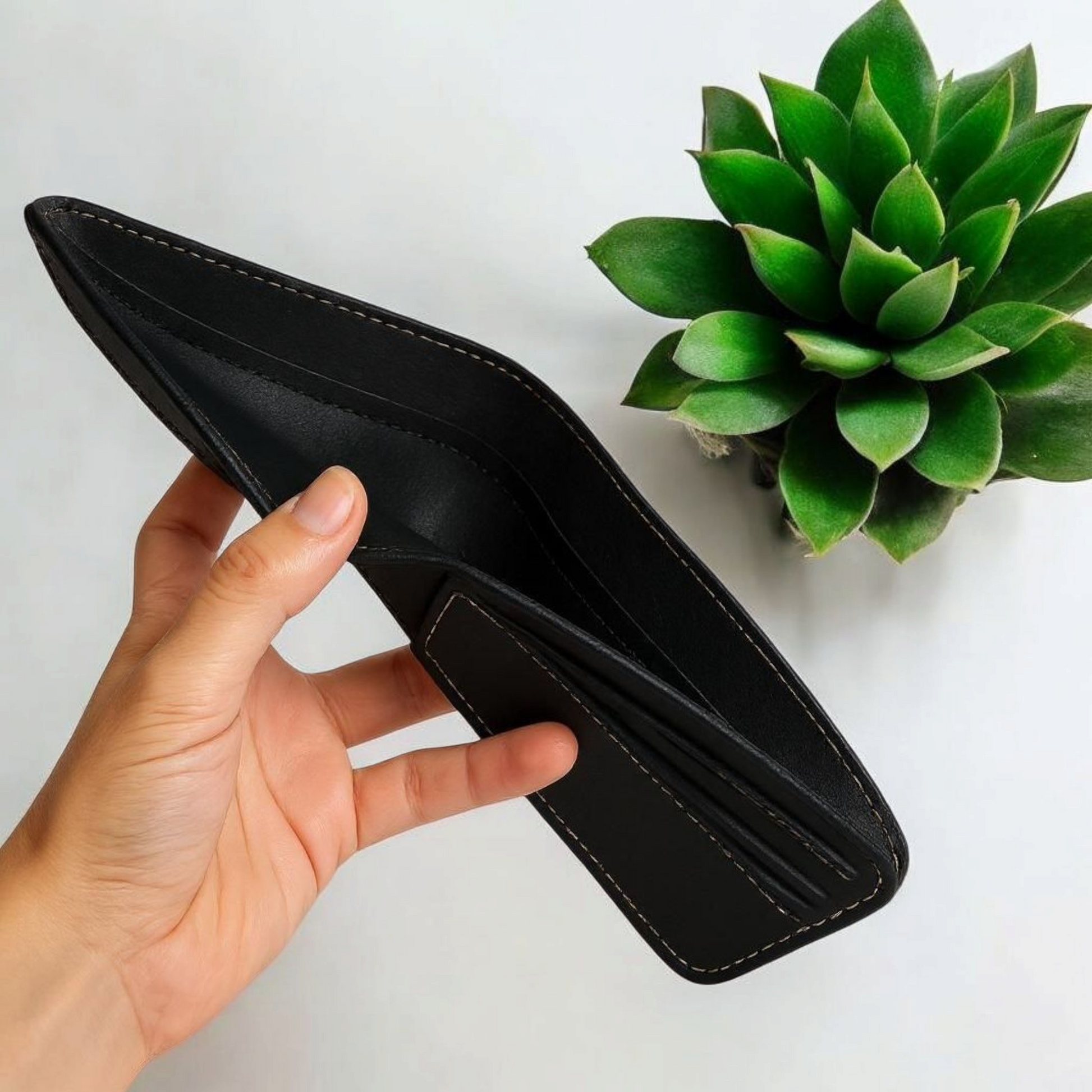Black Leather Wallet – Sleek, compact, and spacious with multiple compartments for cards, cash & ID.