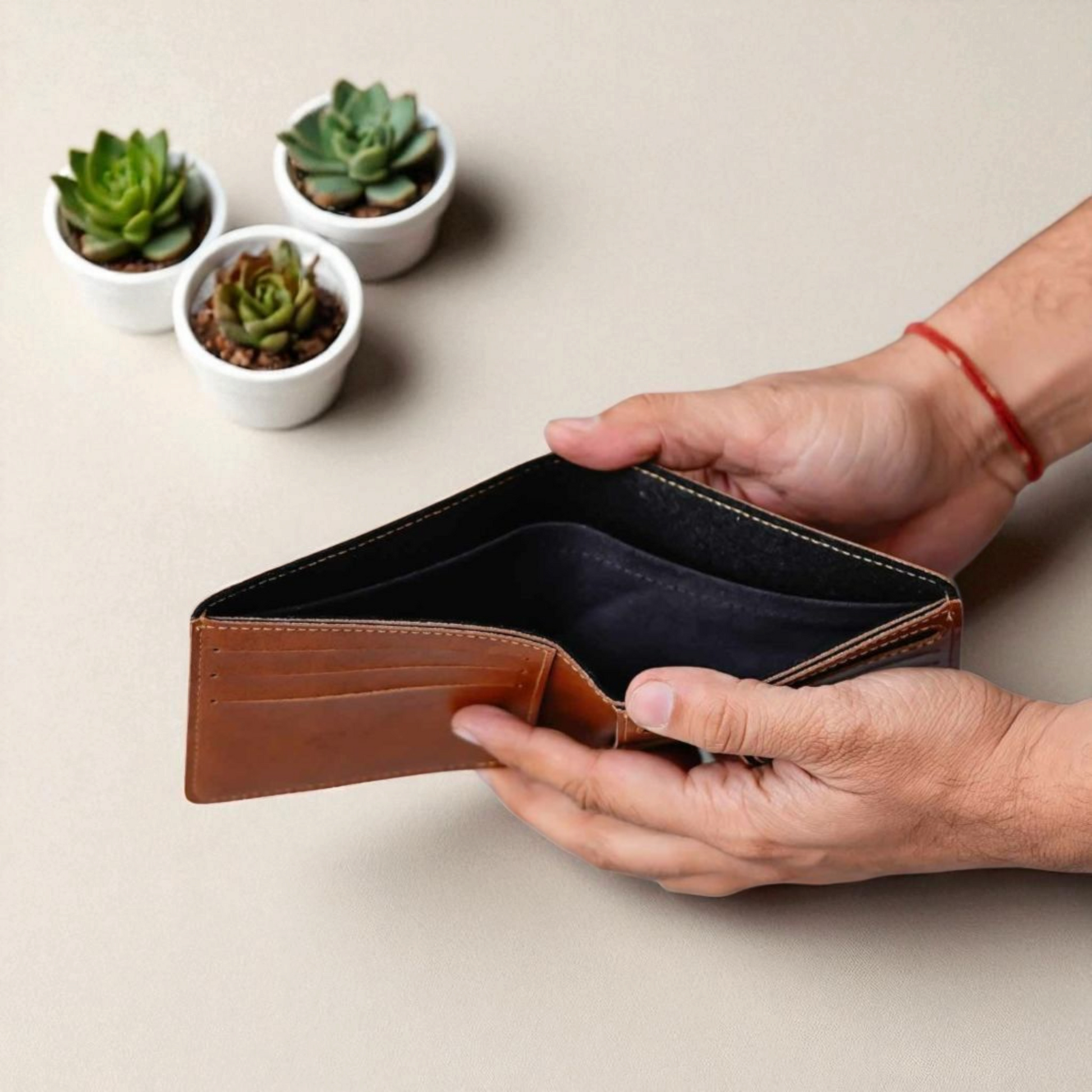 Bronze Leather Wallet – Sleek, compact, and spacious with multiple compartments for cards, cash & ID.